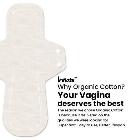 Innate pads offer reliable protection and comfort during your period. Crafted with high-quality materials, including GOTS certified organic cotton and a leak-proof bottom layer, our pads effectively absorb menstrual flow and prevent leaks. The breathable design keeps you feeling fresh and dry throughout the day. With easy-to-use features and durable construction, Innate pads provide peace of mind and comfort during your period.